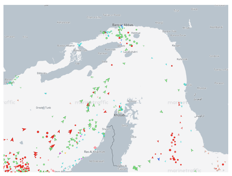 Περίπου 20 πλοία φαίνεται να κινούνται από τον Περσικό Κόλπο προς την έξοδο μέσω των Στενών του Ορμούζ, σύμφωνα με στοιχεία παρακολούθησης πλοίων.