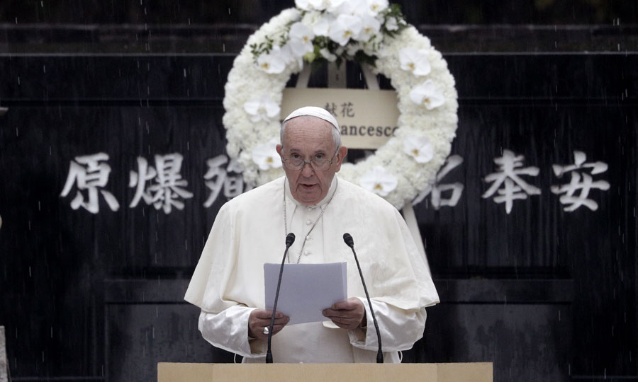 Στο μνημείο θυμάτων της ατομικής βόμβας στο Ναγκασάκι, το 2019. (©AP Photo/Gregorio Borgia)