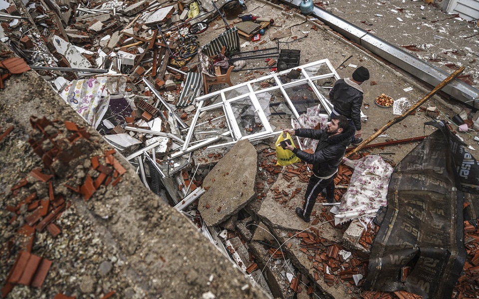 Εικόνες χάους από τα χαλάσματα στο Γκαζιάντεπ της νοτιοανατολικής Τουρκίας (φωτ.: Associated Press).