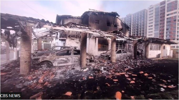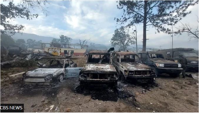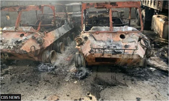Εικόνες του CBS News από τον απόηχο των αμερικανικών αεροπορικών επιδρομών το Σάββατο στο Φουέρτε Τιούνα, μια σημαντική στρατιωτική εγκατάσταση στο Καράκας, καταγράφουν καρβουνιασμένα οχήματα και κατεστραμμένα κτίρια.
