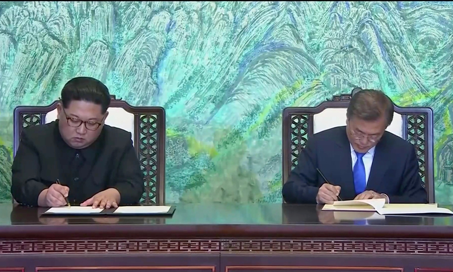 Διακήρυξη για την πλήρη αποπυρηνικοποίηση της Κορεατικής Χερσονήσου, υπέγραψαν οι ηγέτες της Βόρειας και Νότιας Κορέας.