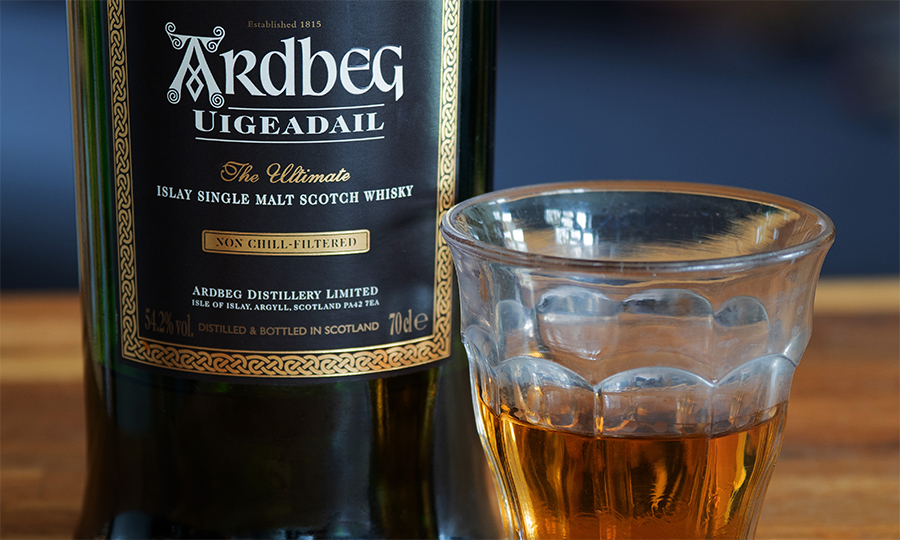 Με νότες από φωτιά στο τζάκι, ζεστό Christmas Cake, λιπαρότητα και αρκετό αλκοόλ για να σε καθηλώσει, το Ardbeg Uigeadail φέρει μια ανεπανάληπτη εμπειρία και ένα αφοπλιστικό κύρος/“Ardbeg Uigeadail Islay Single Malt Scotch Whisky” by Brett Jordan.