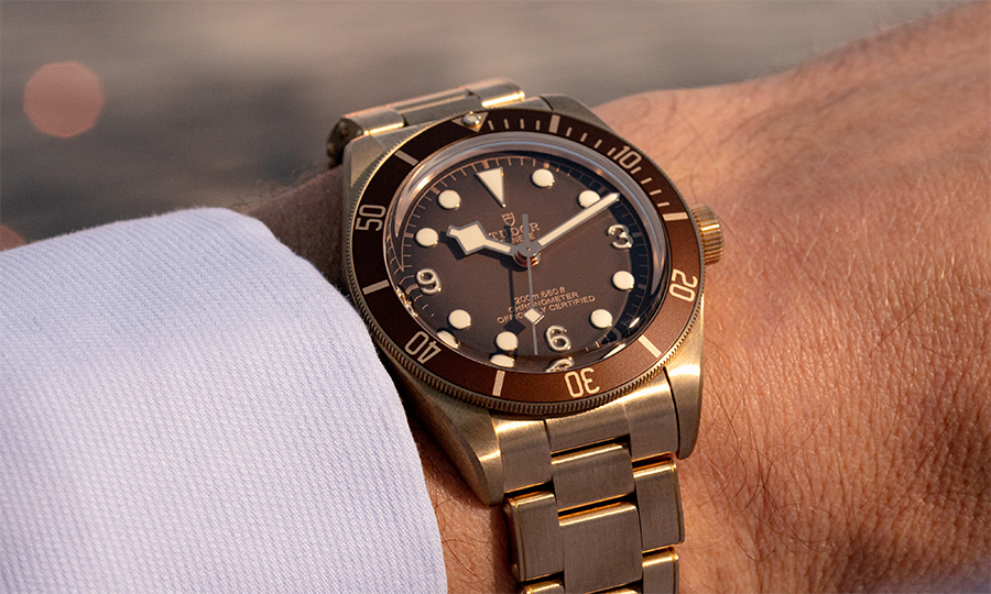 39 μιλίμετρα, καφε-κόκκινη, περιστρεφόμενη στεφάνη και μια πατίνα που μεγαλώνει και αλλάζει μαζί σου, είναι η τέλεια στέγη για την κίνηση MT5400 της Tudor. Το σατινέ φινίρισμα του μπρασελέ και κάσας δεν μπορεί παρά να είναι εκκωφαντικά διακριτικό, ενώ το μπορντό λουράκι που έρχεται σαν δώρο και κυλάει νωχελικά μέσα στο ομόχρωμο καντράν, θυμίζει τις παλιές καλές εποχές που η Apple έβαζε στις συσκευασίες δώρο φορτιστές, ακουστικά, αυτοκόλλητα και πιθανόν ένα οικόπεδο στον Πρωταρά. Στο χέρι φοράει σαν κλασικό Black Bay 58, με ακατέργαστη φινέτσα. Το καφέ/χρυσαφί χρώμα του, δεν είναι τόσο επιδεικτικό ώστε να σε αναγκάσει να κινείσαι με μπράβους, μα ούτε και τόσο διακριτικό ώστε να περάσει απαρατήρητο σε ένα τραπέζι. Μην ξεχνάμε όμως ότι η μαγεία του, είναι στα μάτια του ιδιοκτήτη, ο οποίος για μια εξαιρετικά προσιτή τιμή, παίρνει ένα ρολόι για κάποιον που ξέρει ποιος είναι, τι θέλει, και δεν δείχνει ποτέ βαρετός.