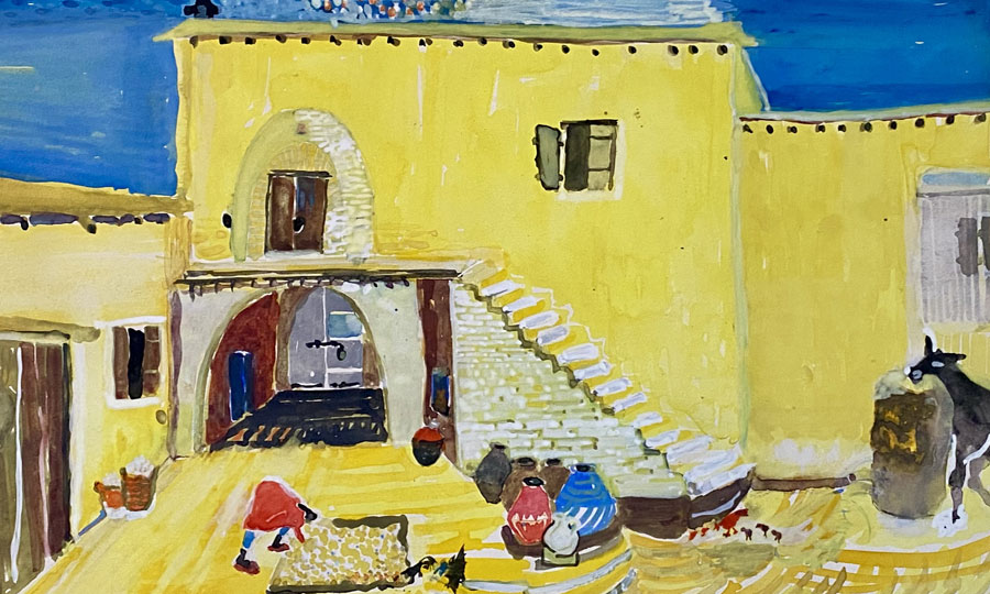 Μου δείχνει το δωμάτιο όπου ζωγραφίζει, στο πάτωμα ένα σωρό μπογιές, στους φθαρμένους τοίχους οι πίνακες της, ο πιο κίτρινος απεικονίζει το σπίτι της, ήταν ωραίο λέει, μεγάλο, με μεγάλη αυλή, στην άκρη βλέπω ζωγραφισμένο ένα γαιδούρι, η συντροφιά μου όταν ήμουν μικρή, λέει, “το αγκάλιαζα, το φιλούσα, έψαχνα σ’αυτό την τρυφερότητα που έλειπε, δουλεύανε όλοι από το πρωί μέχρι το βράδυ, ποιός να σε αγκαλιάσει;” Τί ωραία τα χρώματα σου, της λέω, “κίτρινο, κόκκινο, μπλε”, λέει, “μ’αυτά φτιάχνεις όλα τα άλλα”, αυτά παραμένουν όμως τα βασικά, και εκείνη έτσι θέλει να ζει και να ζωγραφίζει, από τα βασικά στα βασικά. Καθόμαστε στην κουζίνα, μαγείρεψε μαύρο πιλάφι υγιεινό, επιμένει να μείνω να φάμε, δύσκολο να της αρνηθώ, είσαι όμορφη της λέω, εδώ νάμαστε όμορφοι λέει, εδώ και μου δείχνει την καρδιά. Τα χρόνια κυλούν και πάνε, λέει μετά και φέρνει ένα δοχείο με γιαούρτι, εκείνη το έφτιαξε, από γάλα κατσίκας, δοκίμασε, δοκιμάζω, μ’αρέσει, έχει δίκαιο, ο χρόνος κυλά και φεύγει και μαζί του παίρνει όλες τις χειροποίητες γεύσεις που δεν προλάβαμε να μοιραστούμε.