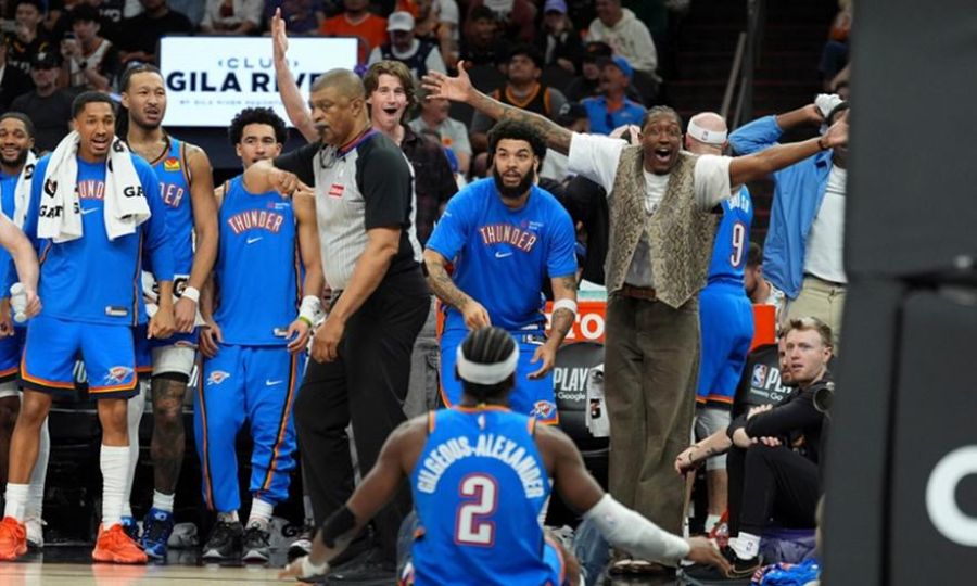 Οι πρωταθλητές του NBA σφράγισαν πρόκριση στον 2ο γύρο στη Δύση, καθώς, επικρατώντας 131-122, έκανε το 4-0 στη σειρά. Ο Γκίλτζιους-Αλεξάντερ ήταν πρώτος σκόρερ με 31 πόντους, 8 ασίστ σε 38 λεπτά συμμετοχής. Ο Χόλμγκριν με 24 πόντους και 12 ριμπάουντ ήταν άξιος συμπαραστάτης. Από την πλευρά των ηττημένων, ο Μπούκερ είχε 24 με 6 ασίστ, αλλά και 6 λάθη, ενώ ο Μπρουκς σημείωσε 23. Στην επόμενη οι Θάντερ θα παίξουν με τον νικητή του ζευγαριού Λέικερς-Χούστον (3-1).