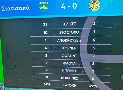 Θα μπορούσε ο Άρης να πετύχει και τέταρτο γκολ στο 64’, όταν ο ΜακΚόσλαντ, πέρασε όποιον βρήκε μπροστά του, έκανε το σουτ μόνος απέναντι απ' τον Οτσόα. Ωστόσο νικητής βρήκε ο Μεξικανός.