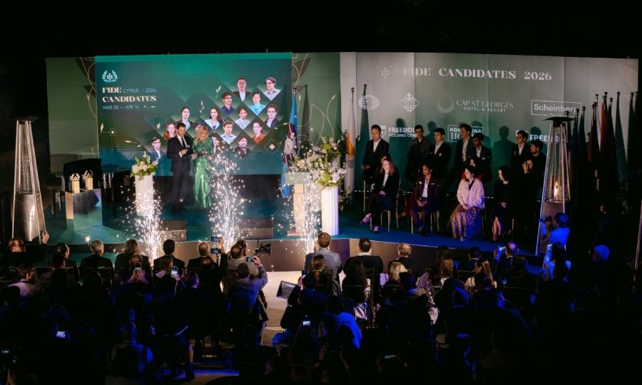Η νύχτα της 28ης Μαρτίου ήταν θυελλώδης, συννεφιασμένη και ελαφρώς βροχερή, από αυτές που σε κάνουν να κρατάς σφιχτά το παλτό σου και να ελπίζεις ότι τα μαλλιά σου θα αντέξουν μέχρι το τέλος της βραδιάς. Κι όμως, ήμουν εκεί, στο ξενοδοχείο Cap St Georges Hotel & Resort στην Πέγεια της Πάφου, για την τελετή έναρξης του Τουρνουά Υποψηφίων του FIDE, την πρώτη φορά που αυτό το κορυφαίο γεγονός σκακιού πραγματοποιείται στην Κύπρο. Και ειλικρινά, ήταν δύσκολο να κρατήσω το βλέμμα μου στους παίκτες. Η θάλασσα, οι βουνοπλαγιές και ο δραματικός ουρανός έκλεβαν συνεχώς την προσοχή μου. Παρ’ όλα αυτά, έπρεπε να συγκεντρωθώ, γιατί αυτό το τουρνουά δεν είναι απλώς ένας ακόμη διαγωνισμός. Ο νικητής; Κερδίζει το δικαίωμα να διεκδικήσει τον τίτλο από τον εν ενεργεία Παγκόσμιο Πρωταθλητή GM Gukesh D.