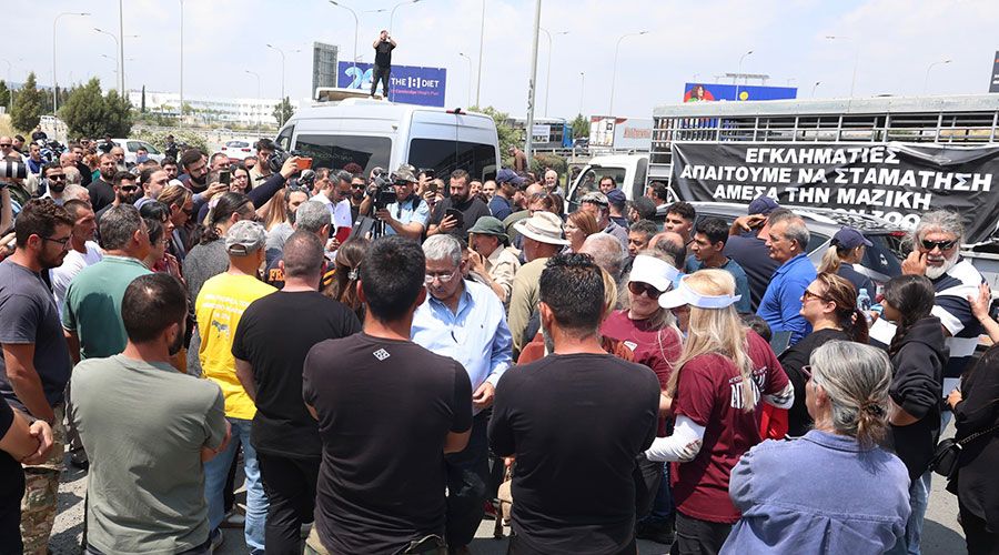 Kathimerini.com.cy Σε εξέλιξη βρίσκεται η εκδήλωση διαμαρτυρίας αυτή την ώρα ομάδας κτηνοτρόφων, στην περιοχή Ριζοελιάς, με τους κτηνοτρόφους να δίνουν τελεσίγραφο στον Πρόεδρο της Δημοκρατίας, να απαντήσει στα αιτήματά τους μέχρι τις 14:00 σήμερα, αλλιώς θα κλιμακώσουν τα μέτρα και θα προχωρίσουν σε επ' αόριστον κινητοποίηση. Η περιοχή του κυκλικού κόμβου έχει αποκλειστεί πλήρως και η τροχαία κίνηση δεν είναι δυνατή από καμία λωρίδα κυκλοφορίας.