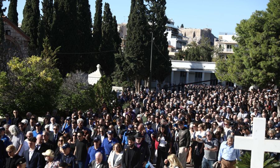 Νωρίτερα, μεγάλο πλήθος κόσμου χαιρέτισε με χειροκροτήματα και επευφημίες το φέρετρο με τη σορό του «Νιόνιου». Σε κλίμα οδύνης τελέστηκε η κηδεία στη Μητρόπολη Αθηνών.