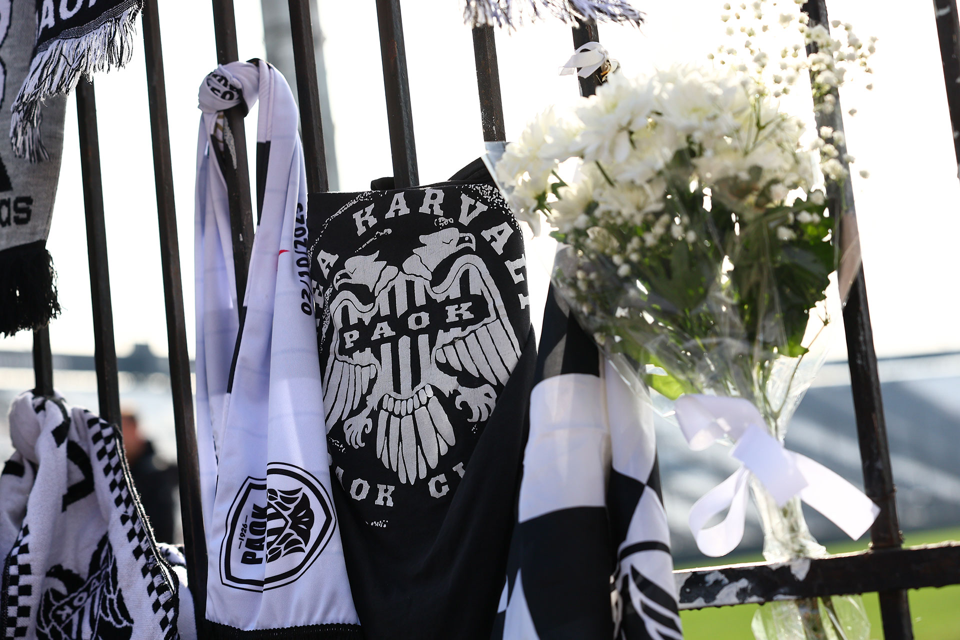 Η θύρα 4 είναι ανοιχτή και άνθρωποι κάθε ηλικίας αφήνουν συγκινημένοι προσωπικά τους αντικείμενα και κασκόλ, ενώ στον χώρο δεσπόζει το μεγάλο πανό που γράφει «Καλό Παράδεισο Αδέλφια» αποχαιρετώντας τα θύματα. Μάλιστα, οι σύνδεσμοι του ΠΑΟΚ ετοιμάζονται να υποδεχτούν στο αεροδρόμιο «Μακεδονία» τις σορούς των επτά φίλων του «Δικεφάλου του Βορρά», που θα επαναπατριστούν με αεροσκάφος C-130 της Πολεμικής Αεροπορίας και στη συνέχεια με μηχανοπομπή θα τις συνοδεύσουν έως το γήπεδο της Τούμπας.