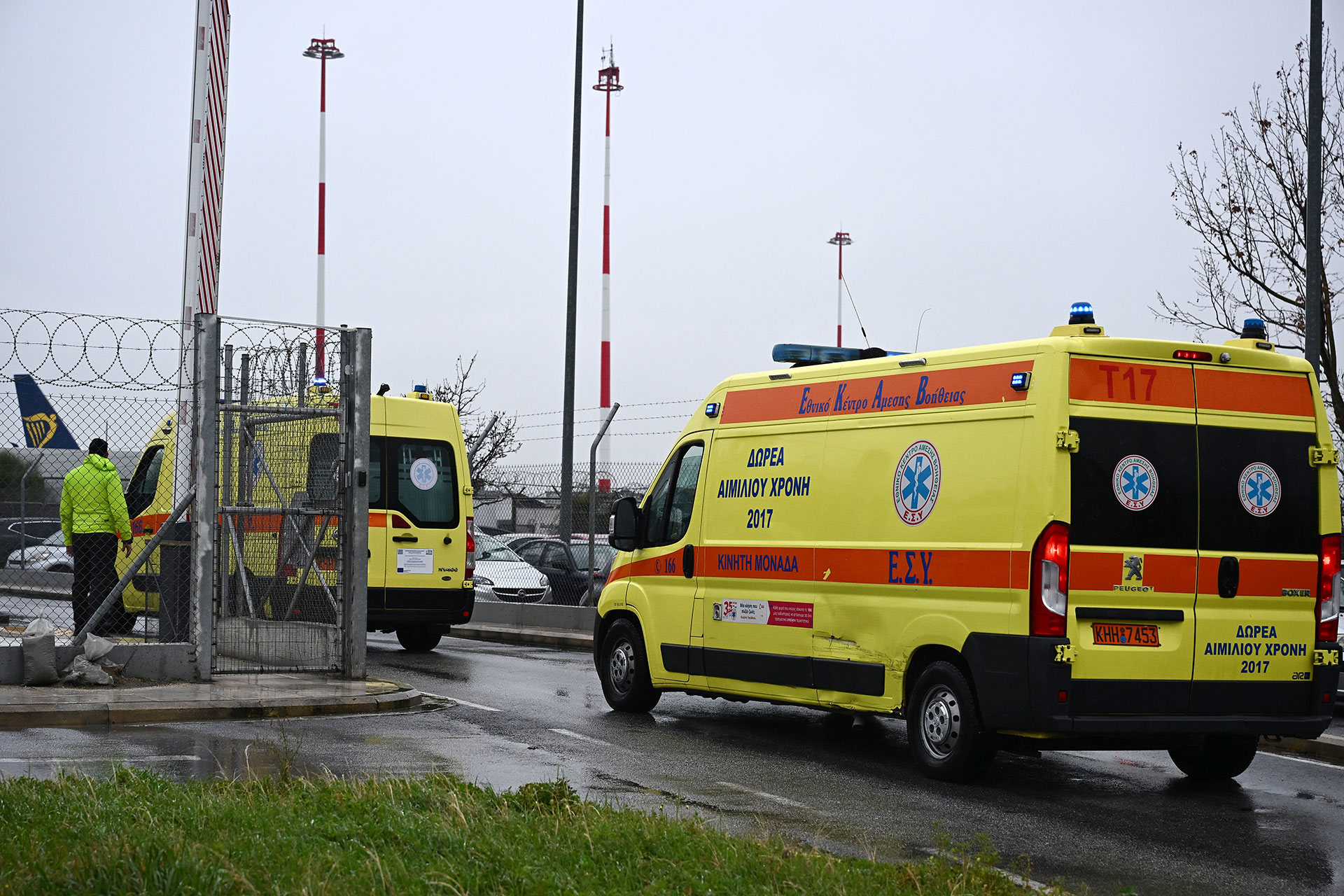 Ασθενοφόρα στο αεροδρόμιο «Μακεδονία» για να παραλάβουν τους δύο τραυματίες