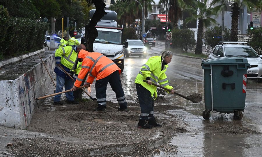 Οι ισχυρές βροχοπτώσεις πλημμύρισαν δρόμους, ενώ σε αρκετές περιοχές σημειώθηκαν πτώσεις δέντρων.
