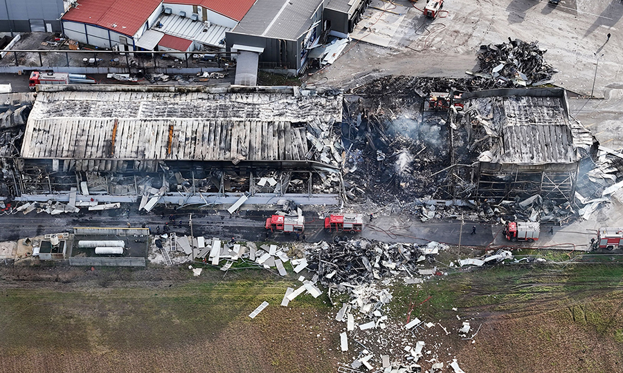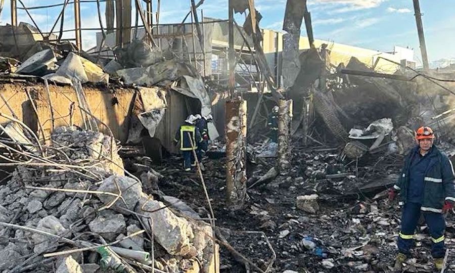 Πανοραμική άποψη της πτέρυγας του εργοστασίου που καταστράφηκε ολοσχερώς. Από την έρευνα της Πυροσβεστικής προέκυψε ότι η έκρηξη οφείλεται σε διαρροή προπανίου από σωλήνα που βρίσκεται κάτω από την επιφάνεια του εδάφους. [INTIME NEWS]