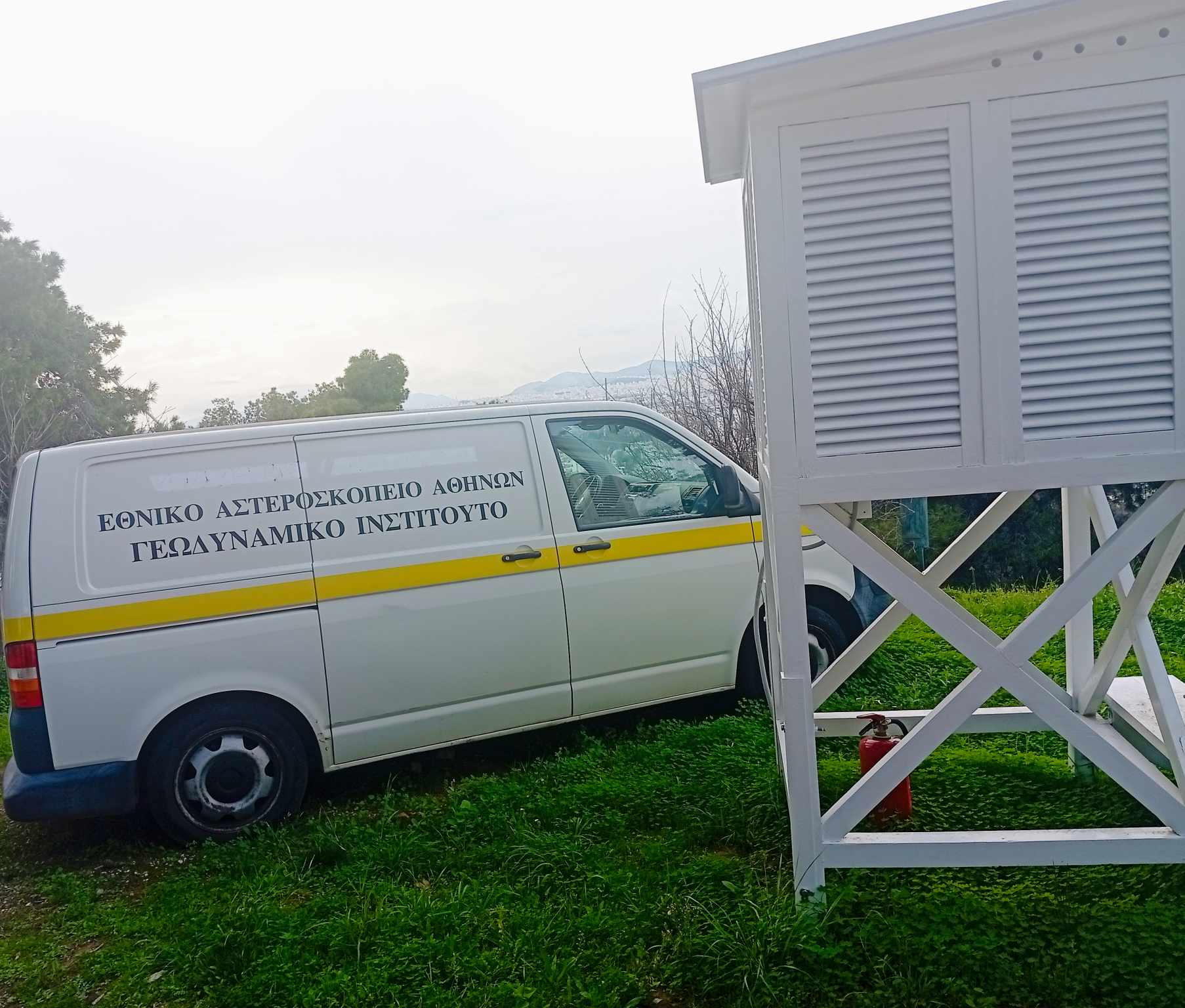 Το βανάκι του Γεωδυναμικού Ινστιτούτου, έτοιμο για αναχώρηση προς το λιμάνι του Πειραιά κι από εκεί σε Ανάφη και Αμοργό με το πλοίο. Εντός του βρίσκονται δύο νέοι σεισμογράφοι που θα τοποθετηθούν στα δύο παραπάνω νησιά.