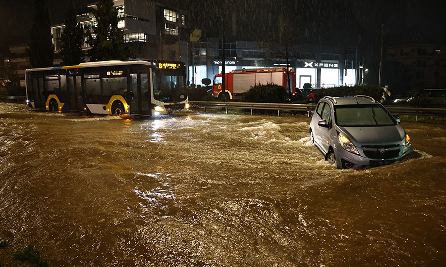 Κακοκαιρία στην Αττική: Εικόνες από τις καταρρακτώδεις βροχές