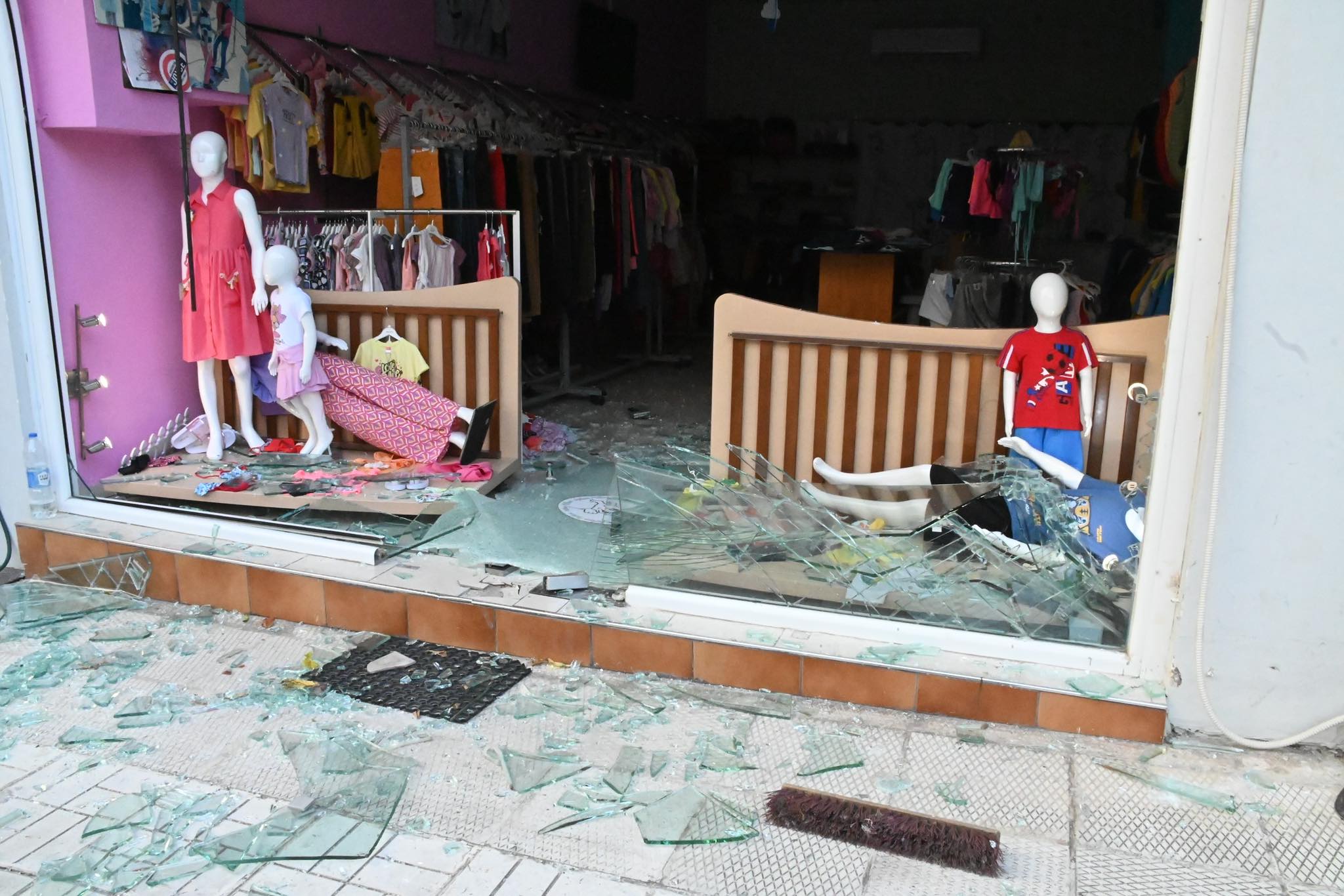 Το ωστικό κύμα έσπασε τζάμια καταστημάτων και σπιτιών μέσα στον οικισμό. Φωτογραφία: kathimerini.gr
