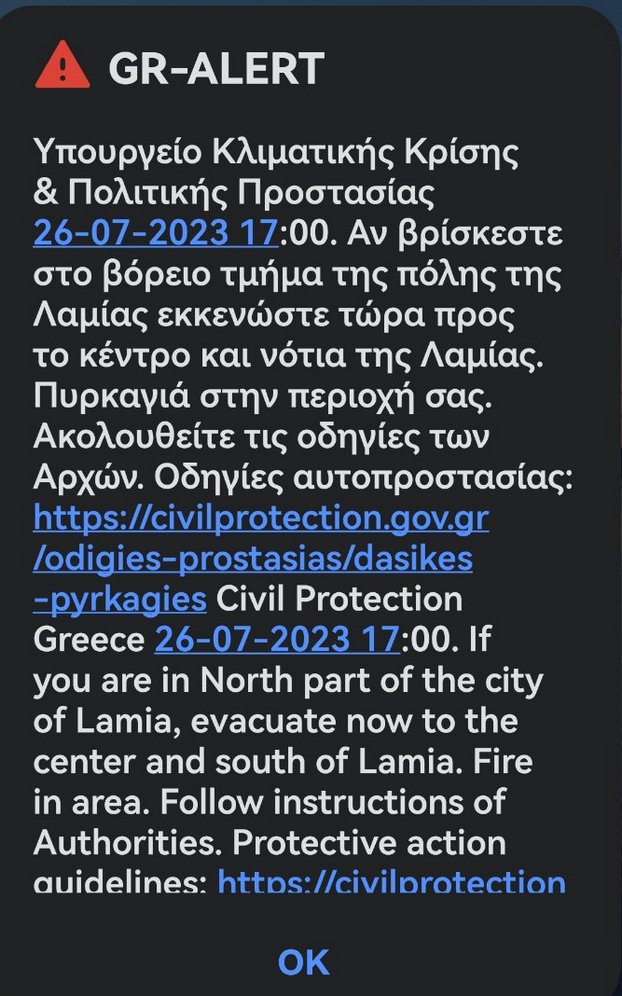 Σύμφωνα με το τοπικό μέσο lamiareport.gr, εστάλη μήνυμα από το 112 για την εκκένωση της περιοχής.