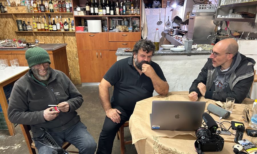Σκηνή από ανεπίσημες προβολές του ντοκιμαντέρ «Το φιλόξενο βλέμμα» σε χωριά των Σφακίων, Copyright Κων/νος Καλαντζής 2024