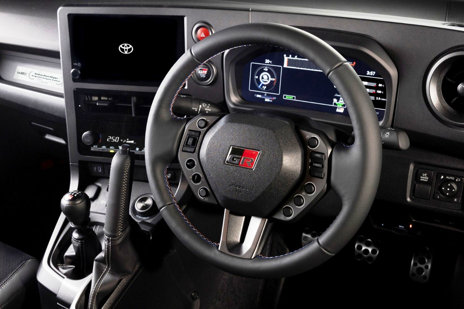 Η εμφάνιση του μοντέλου ακολουθεί μια διακριτική αλλά λειτουργική αισθητική, εμπνευσμένη από τις απαιτήσεις των ειδικών διαδρομών. Το νέο χρώμα Black Gravite παραπέμπει στις αγωνιστικές δραστηριότητες της Toyota για το 2025, ενώ συνδυάζεται με μαύρες ματ ζάντες και μπλε δαγκάνες φρένων, στο χρώμα-υπογραφή του Ogier. Στη μάσκα υπάρχει τριχρωμία εμπνευσμένη από τη γαλλική σημαία. Στο εσωτερικό, οι ίδιες αποχρώσεις επαναλαμβάνονται στις ραφές του τιμονιού, το οποίο έχει μικρότερη διάμετρο και νέα διάταξη διακοπτών, βασισμένη στο αγωνιστικό GR Yaris Rally2. Το κάθε αυτοκίνητο θα φέρει αριθμημένη πλακέτα, ενώ στον ψηφιακό πίνακα οργάνων θα εμφανίζονται ειδικά γραφικά για τις λειτουργίες «SEB» και «MORIZO».