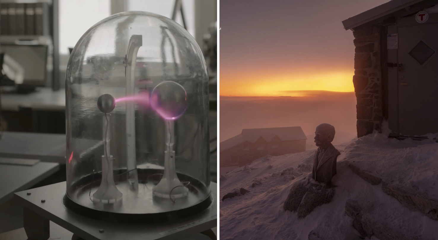 Από αριστερά προς τα δεξιά: Μαγνητισμένες σφαίρες, στο παρατηρητήριο του Τρόμσο / Μια προτομή του δρος Μπίρκλαντ «υποδέχεται» τους επισκέπτες στο παρατηρητήριο του όρους Χαλντ.