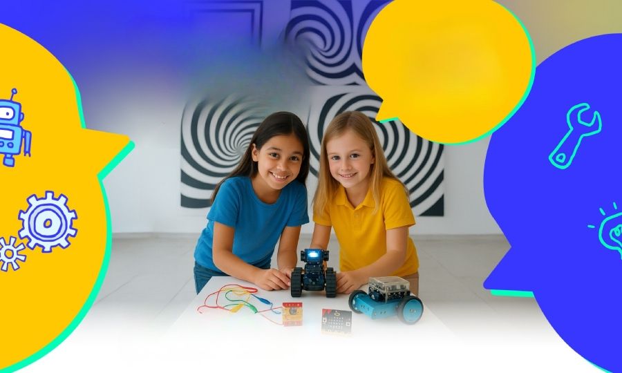 Με τη βοήθεια των συσκευών Makey Makey, υπολογιστών και απλών υλικών, τα παιδιά θα δημιουργήσουν τη δική τους μουσική. - Οδηγήσουν ρομπότ σε πίστα