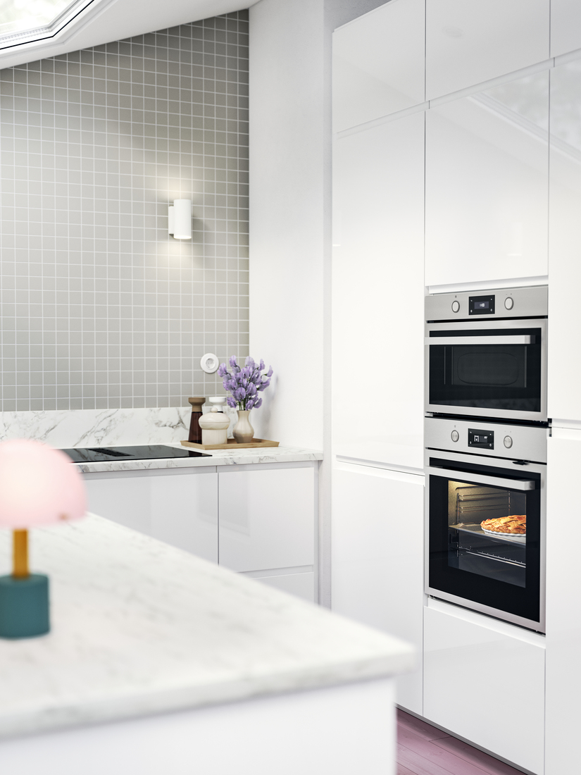 Καλώς ήρθες, λοιπόν, σε μια κουζίνα όπου ο μοντέρνος σχεδιασμός συναντά τη γλύκα των μικρών λεπτομερειών. Οι γυαλιστερές προσόψεις ρίχνουν φως παντού και κάνουν τον χώρο να δείχνει φρέσκος και καθαρός, ενώ τα ενσωματωμένα χερούλια δίνουν αυτό το ήρεμο, μίνιμαλ ύφος που κάνει τα πάντα να δείχνουν τακτοποιημένα, ακόμα κι αν δεν είναι (συμβαίνει και στις καλύτερες οικογένειες). Ρίξε κι ένα touch χρώματος εδώ κι εκεί, πρόσθεσε λίγο ξύλο για ζεστασιά και ορίστε, έχεις μια κουζίνα που είναι και λειτουργική και φιλόξενη, χωρίς να προσπαθεί πολύ!