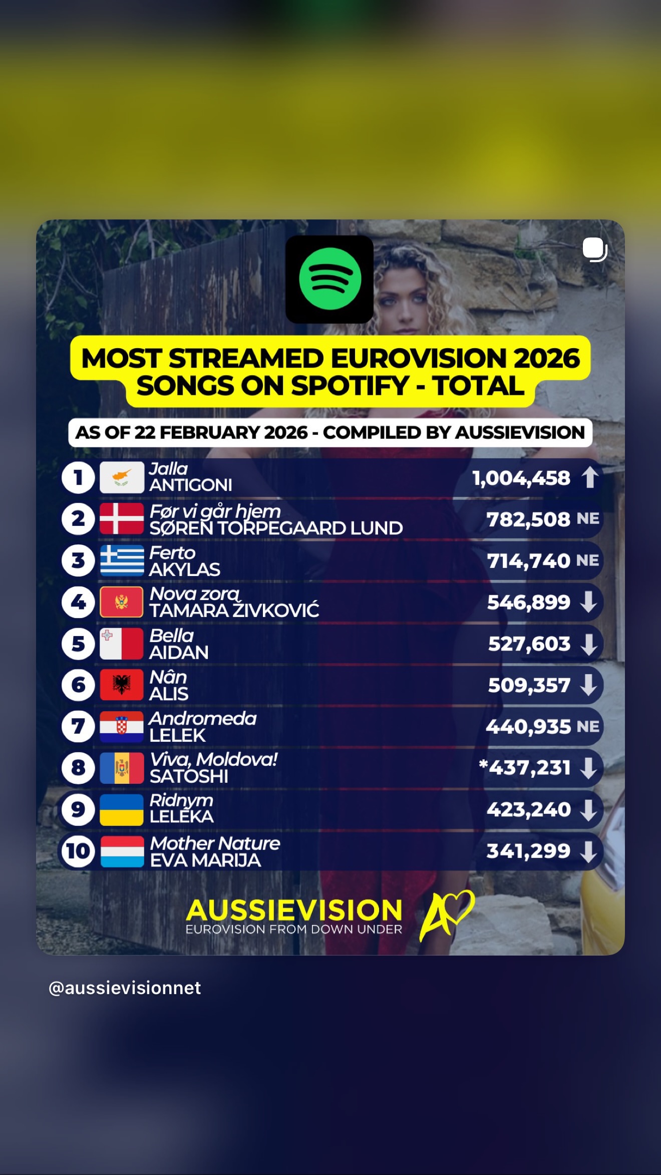 Μόλις λίγες εβδομάδες μετά την κυκλοφορία του, το «JALLA» έχει ήδη καταφέρει αυτό που πολλές συμμετοχές ονειρεύονται, να ξεπεράσει το 1 εκατομμύριο streams στο Spotify και να γίνει η πρώτη συμμετοχή της Eurovision 2026 που σπάει αυτό το ορόσημο.