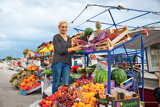 (Η διάσημη Νεκταρία της Αίγινας στα μανάβικα του νησιού)