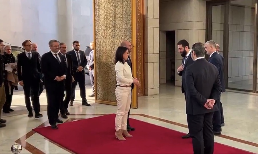 Ο Γάλλος ΥΠΕΞ Ζαν Νοέλ Μπαρό και η Γερμανίδα ομόλογός του Αναλένα Μπέρμποκ συναντήθηκαν χθες με τον ντε φάκτο ηγέτη της Συρίας Αχμεντ αλ Σάρα στη Δαμασκό. Το γεγονός ότι απέφυγε να χαιρετήσει την Μπέρμποκ διά χειραψίας δεν διέλαθε την προσοχή της. Ερωτηθείσα αν η Ε.Ε. πρόκειται να άρει τις κυρώσεις που έχει επιβάλει στη Συρία, εκείνη απάντησε ότι «αυτό θα εξαρτηθεί από την πολιτική διαδικασία», προσθέτοντας ότι «μέχρι τώρα λαμβάνουμε αντιφατικά μηνύματα». [Χ]