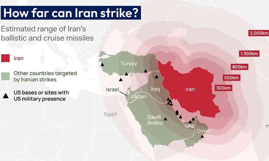 Σε αυτό το πλαίσιο, ο χάρτης των χωρών που βρίσκονται δυνάμει στο στόχαστρο ιρανικών επιθέσεων διευρύνεται, καθώς η σύγκρουση κινδυνεύει να εξελιχθεί σε έναν παρατεταμένο πόλεμο φθοράς.