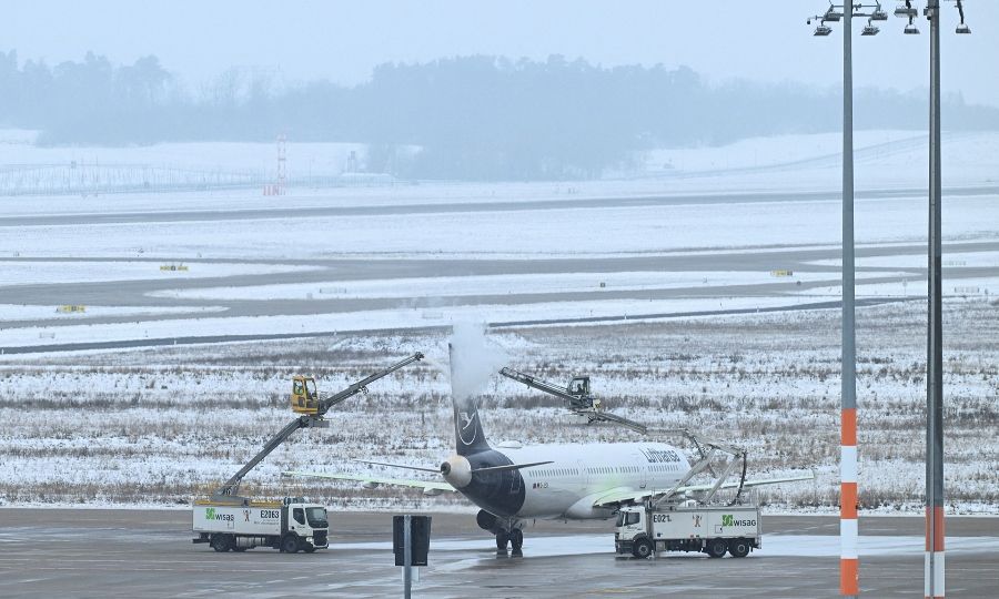 Καθυστερήσεις αναμένονται σε όλη τη διάρκεια της ημέρας και οι αφίξεις περιορίζονται, καθώς το προσωπικό εργάζεται για τον καθαρισμό του κύριου διαδρόμου προσαπογείωσης από τον πάγο.