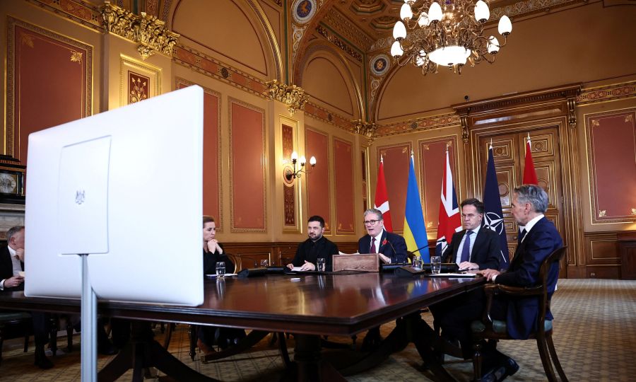 Σαφές μήνυμα ενότητας και αποφασιστικότητας απέναντι στη Ρωσία έστειλαν ο πρόεδρος της Ουκρανίας Βολοντίμιρ Ζελένσκι, ο πρωθυπουργός του Ηνωμένου Βασιλείου Κιρ Στάρμερ και ο γενικός γραμματέας του ΝΑΤΟ Μαρκ Ρούτε από το Λονδίνο, στο πλαίσιο της συνέντευξης Τύπου που ακολούθησε τη συνεδρίαση της «συμμαχίας των προθύμων».