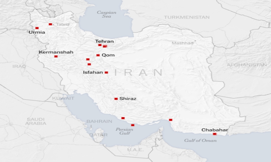 Ακολουθεί χάρτης με τις περιοχές του Ιράν που έχουν δεχθεί πλήγματα από την έναρξη της αμερικανο-ισραηλινής στρατιωτικής επίθεσης.