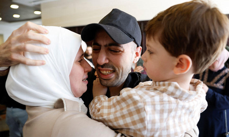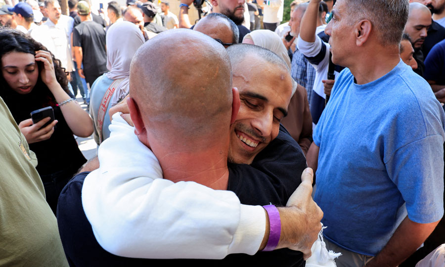 Υπό τις επευφημίες εκατοντάδων ανθρώπων, οι απελεθερωθέντες, κάποιοι με την κεφίγια τυλιγμένη γύρω από τον λαιμό τους, έπεσαν στην αγκαλιά των οικογενειών τους.