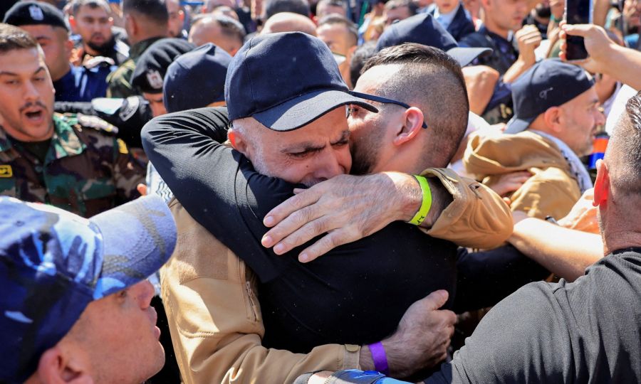 Πλήθος ανθρώπων υποδέχθηκαν με ένα ξέσπασμα χαράς και δακρύων στη Ραμάλα την άφιξη λεωφορείων που μετέφεραν Παλαιστίνιους που μόλις απελευθερώθηκαν από το Ισραήλ στο πλαίσιο της ανταλλαγής τους με τους τελευταίους ζωντανούς ομήρους που είχαν συλληφθεί στη Λωρίδα της Γάζας.