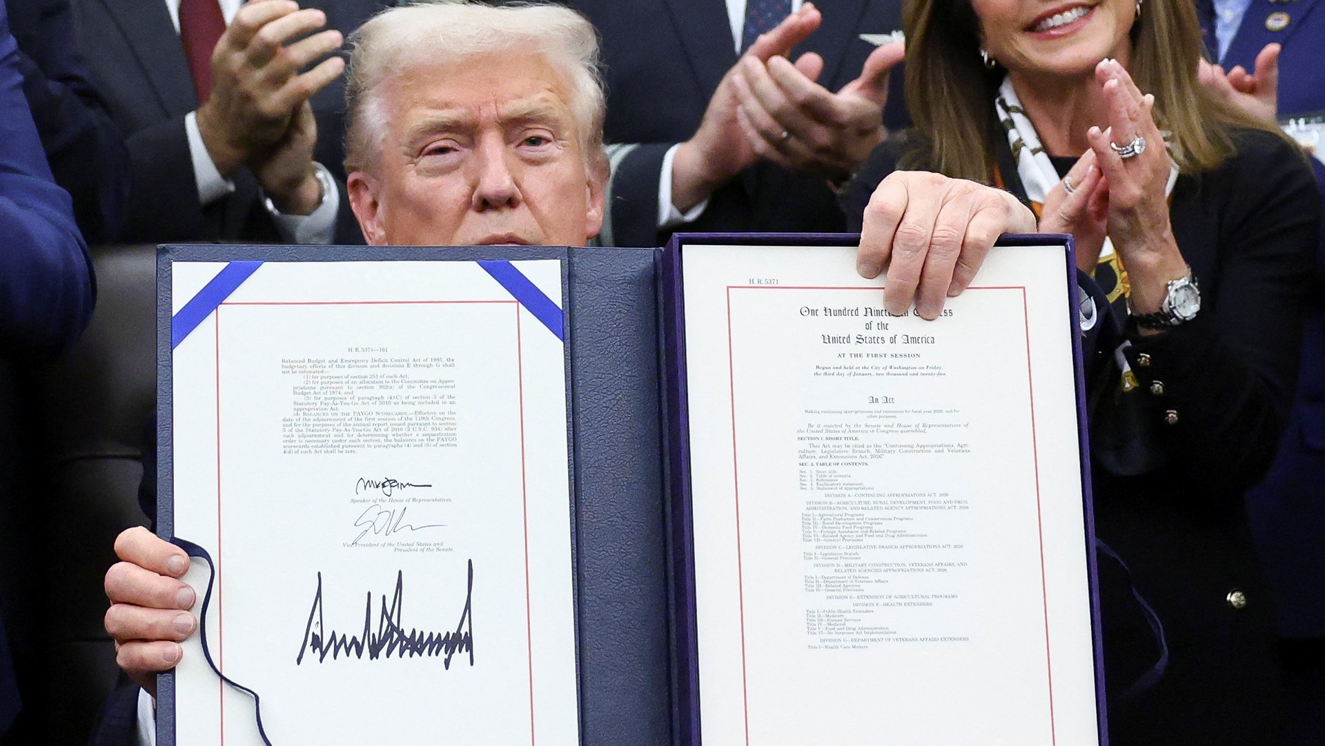 Ο Ντόναλντ Τραμπ επικύρωσε χθες, Τετάρτη, το βράδυ (τοπική ώρα· σήμερα, Πέμπτη, το πρωί ώρα Ελλάδος) νόμο με τον οποίο παίρνει τέλος η πιο μακρά δημοσιονομική παράλυση που έζησαν ποτέ οι ΗΠΑ, διάρκειας 43 ημερών, δραττόμενος της ευκαιρίας για να εξαπολύσει μύδρους εναντίον της δημοκρατικής αντιπολίτευσης και να διαλαλήσει, για ακόμη μία φορά, τα καλά της οικονομικής πολιτικής του.