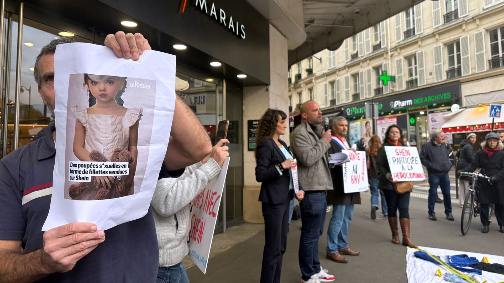 Λίγο αργότερα, η γαλλική κυβέρνηση ανακοίνωσε ότι αναστέλλει την πρόσβαση στην ηλεκτρονική πλατφόρμα της Shein, έως ότου η εταιρεία αποδείξει πως τα προϊόντα της είναι σύμφωνα με τη γαλλική νομοθεσία. Η απόφαση ήρθε έπειτα από καταγγελίες για πώληση κουκλών του σεξ με χαρακτηριστικά παιδιών στον ιστότοπο της εταιρείας. Το υπουργείο Οικονομικών, που ανακοίνωσε την αναστολή, δεν διευκρίνισε εάν η απόφαση θα επηρεάσει και τη λειτουργία του φυσικού καταστήματος.