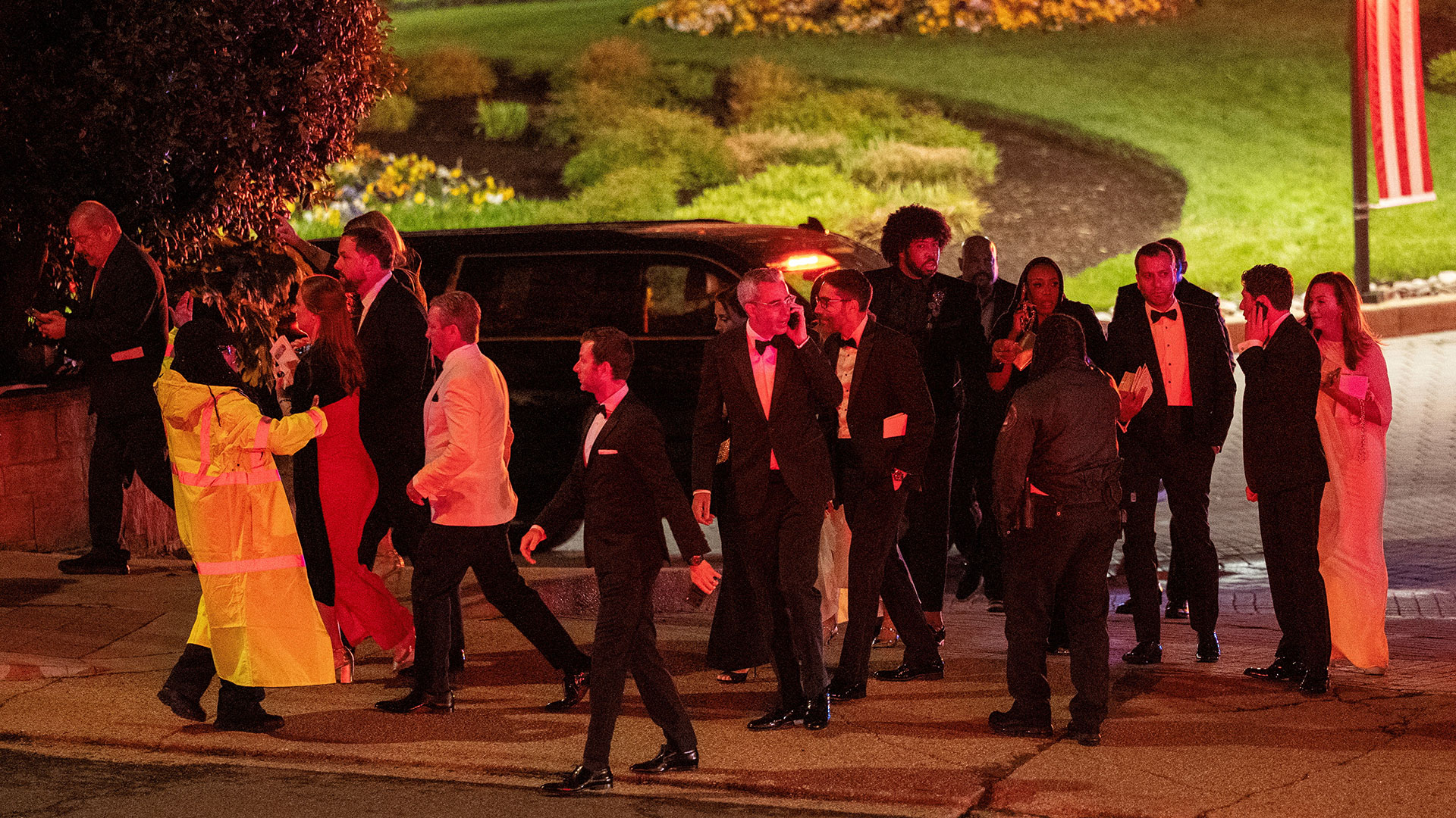 Παρευρισκόμενοι αποχωρούν από το δείπνο της Ενωσης Ανταποκριτών του Λευκού Οίκου στην Ουάσιγκτον. Πηγή: REUTERS