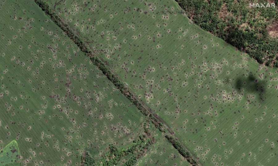 Στις αρχές του περασμένου Ιουνίου, δορυφόροι κατέγραψαν εκατοντάδες κρατήρες από βλήματα πυροβολικού, γύρω από το χωριό Ντοβένκε στην ανατολική Ουκρανία, καθώς και έναν κρατήρα πλάτους 40 μέτρων από έκρηξη βόμβας.