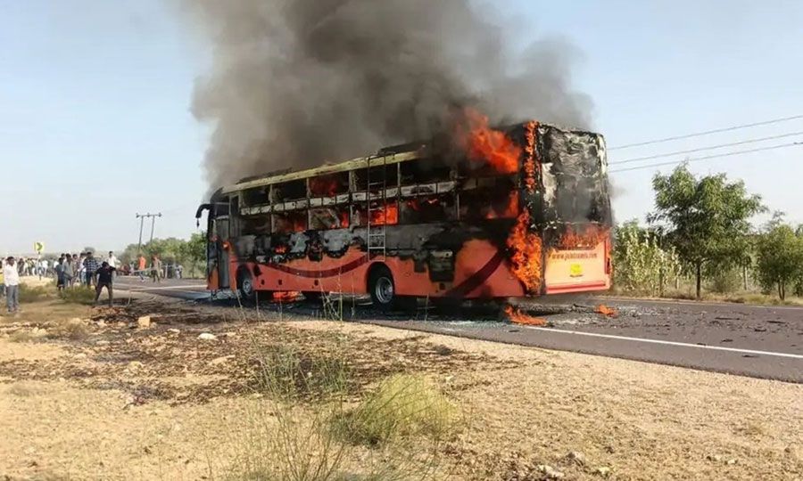 ରାଜସ୍ଥାନ ରାଜରାସ୍ତାରେ ବଡ଼ ଦୁର୍ଘଟଣା । ହଠାତ୍ ନିଆଁ ଲାଗିଗଲା ଯାତ୍ରୀବାହୀ ବସ୍ରେ, ୧୨ ଜଣଙ୍କ ଗଲା ଜୀବନ#Rajastan #BusFire #Odisha #KanakNews pic.twitter.com/DXQMfsdyBm