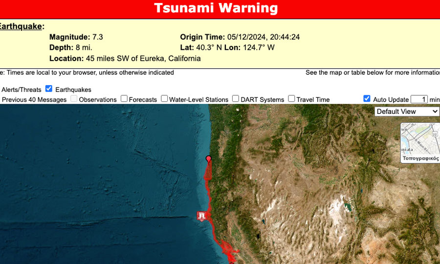 Περιοχές των ακτών της Καλιφόρνια για τις οποίες εκδόθηκε προειδοποίηση για τσουνάμι – Φωτ.: US Tsunami Warning System