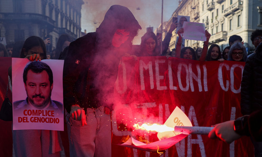 Η εθνική αρχή απεργιών ανακοίνωσε χθες, Πέμπτη, ότι τα συνδικάτα παραβίασαν τους κανόνες. Οι φιλοπαλαιστινιακές διαμαρτυρίες επρόκειτο να συνεχιστούν το Σάββατο, με μαζική συγκέντρωση στη Ρώμη, έπειτα από αρκετές ημέρες διαδηλώσεων, κάποιες φορές βίαιων, και αντιπαραθέσεων με την αστυνομία.