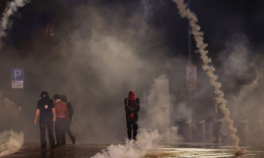 Στο τέλος πορείας αλληλεγγύης στον παλαιστινιακό λαό, μικρή ομάδα συμμετεχόντων με καλυμμένα πρόσωπα πέταξε αντικείμενα κι έριξε κιγκλιδώματα που είχαν τοποθετηθεί προς την κατεύθυνση οχημάτων της αστυνομίας. Αστυνομικοί αντέδρασαν κάνοντας χρήση ροπάλων και ρίψη δακρυγόνων.
