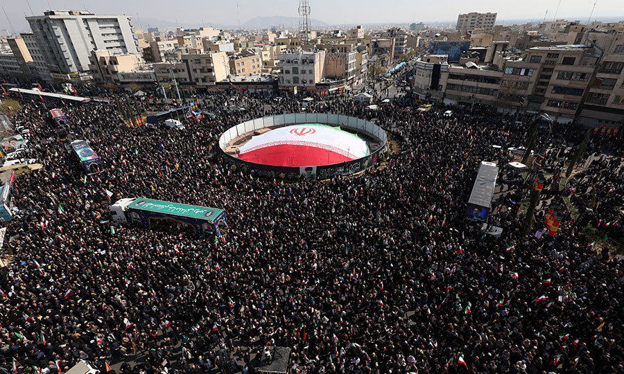 Μεγάλες συγκεντρώσεις καταγράφηκαν στην Τεχεράνη, όπου πλήθη συγκεντρώθηκαν για τις κηδείες του Αλί Λαριτζανί, επικεφαλής ασφαλείας του Ιράν, και του Γκολαμρεζά Σολεϊμανί, διοικητή της παραστρατιωτικής οργάνωσης Basij.