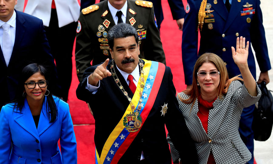 Ο Νικολάς Μαδούρο ανάμεσα στη Ροντρίγκες (στα δεξιά του) και τη σύζυγό του, Σίλια Φλόρες – Φωτ.: REUTERS/Marco Bello TPX IMAGES OF THE DAY/File Photo