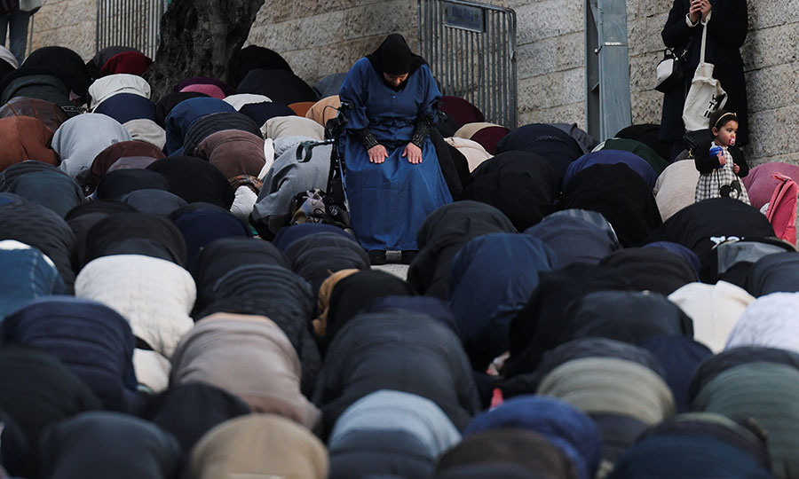 Τέλος του ιερού μήνα του Ραμαζανιού - Παλαιστίνιοι προσεύχονται σε δρόμο
