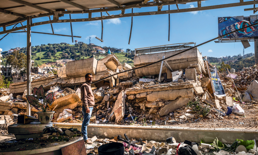Ο Αμπάς Χαζάλα απομακρύνει με μια σκούπα τα συντρίμμια από το μαγαζί του. Ελάχιστα στοιχεία προδίδουν πως πριν από δύο περίπου μήνες στον χώρο λειτουργούσε ένα από τα ομορφότερα ανθοπωλεία της πόλης Ναμπατίγιε, στον νότιο Λίβανο. «Είναι επώδυνο να βλέπω το μαγαζί κατεστραμμένο. Στεναχωριέμαι να βλέπω την πηγή χαράς και εισοδήματός μου έτσι. Είμαστε δυνατοί όμως άνθρωποι, θα τα ξαναφτιάξουμε».
