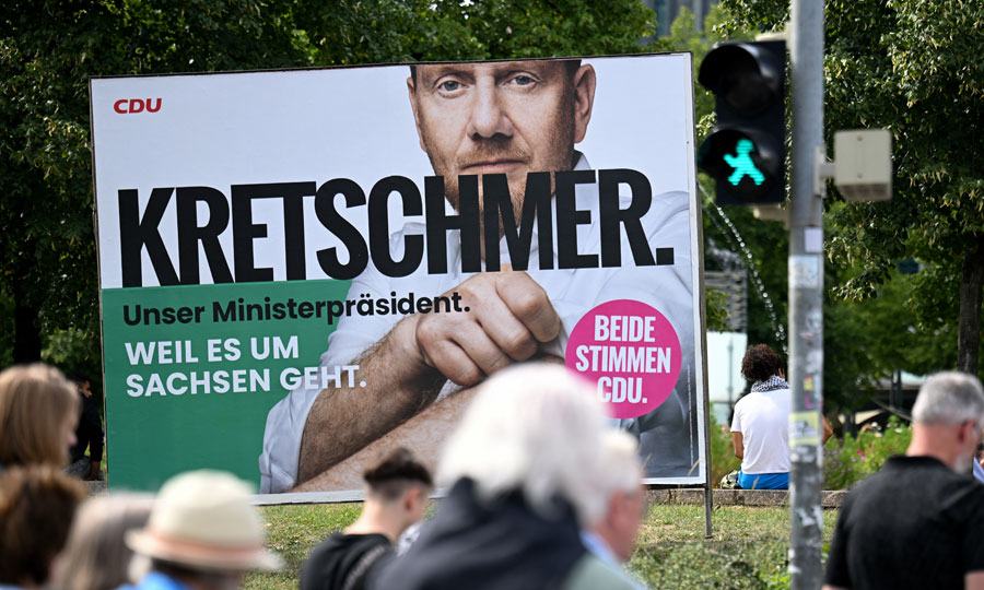Στη Σαξονία το CDU εμφανίζεται αρκούντως ανταγωνιστικό ακόμα, κάτι που εν μέρει οφείλει στον Χριστιανοδημοκράτη πρωθυπουργό του κρατιδίου, Μίκαελ Κρέτσμερ, ο οποίος αντιτίθεται στα δισεκατομμύρια στρατιωτικής βοήθειας προς το Κίεβο – Φωτ.: REUTERS/Annegret Hilse