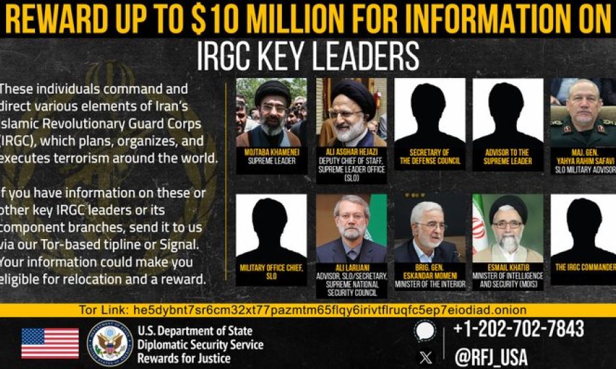«Εχετε πληροφορίες για αυτούς τους τρομοκράτες Ιρανούς ηγέτες; Στείλτε μας πληροφορίες. Μπορεί να σας επιλέξουμε για ανταμοιβή και για μετεγκατάσταση».
