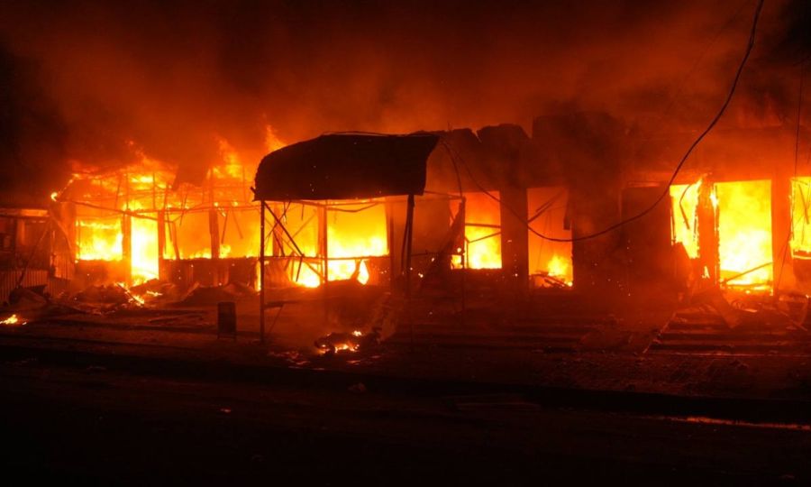 Σε φωτογραφικό υλικό που μεταφόρτωσε ο περιφερειάρχης διακρίνονται κτίρια τυλιγμένα στις φλόγες και δρόμοι γεμάτοι συντρίμμια